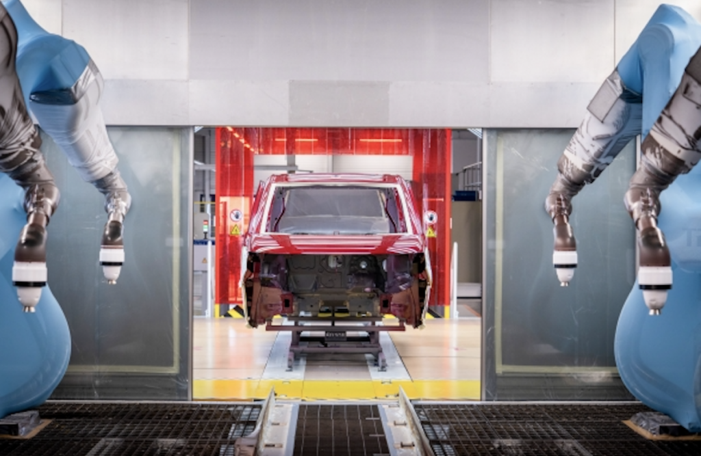 En el taller de pintura, tras la puesta en marcha de un nuevo sistema de recubrimiento hace dos años, se utiliza ahora un nuevo sistema bicolor. Es aquí donde los nuevos vehículos Multivan obtienen sus famosos acabados en dos tonos.