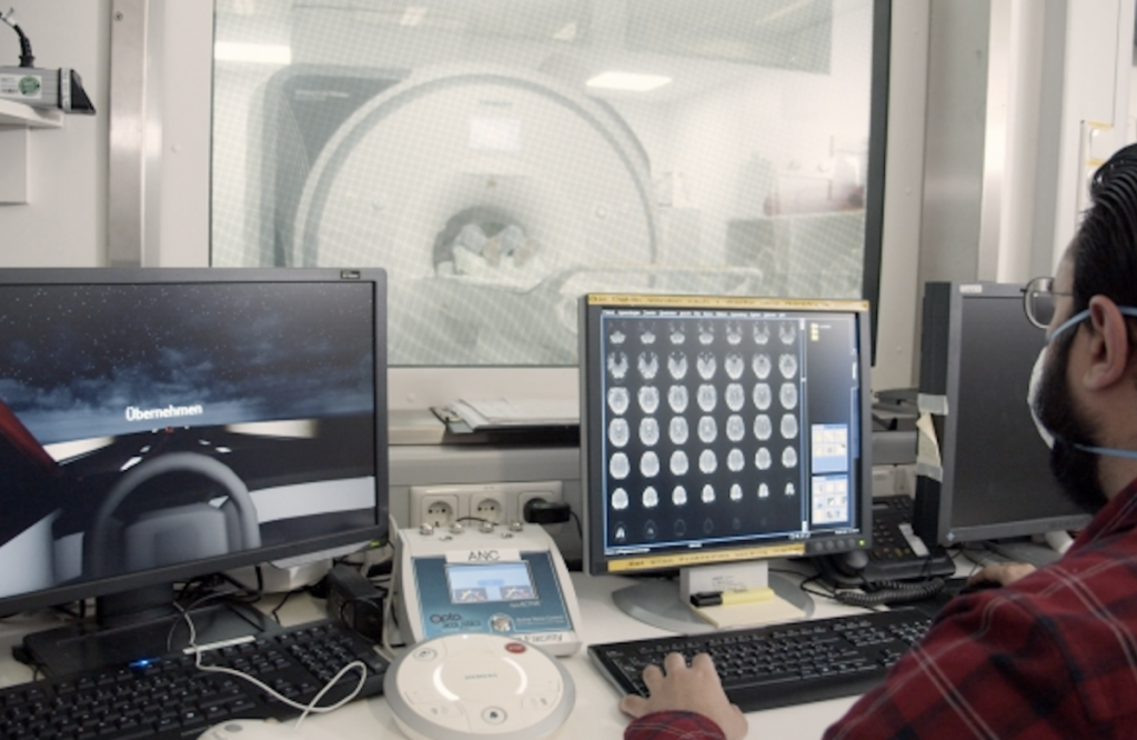 Ford está llevando a cabo esta investigación sobre el mapeo de patrones cerebrales a las reacciones del conductor con Uniklinik RWTH Aachen, en Alemania. Las pruebas consisten en que los participantes completan una simulación de conducción mientras su actividad cerebral es escaneada por una máquina de resonancia magnética. Un espejo especialmente colocado permite a los participantes ver la simulación en la pantalla.