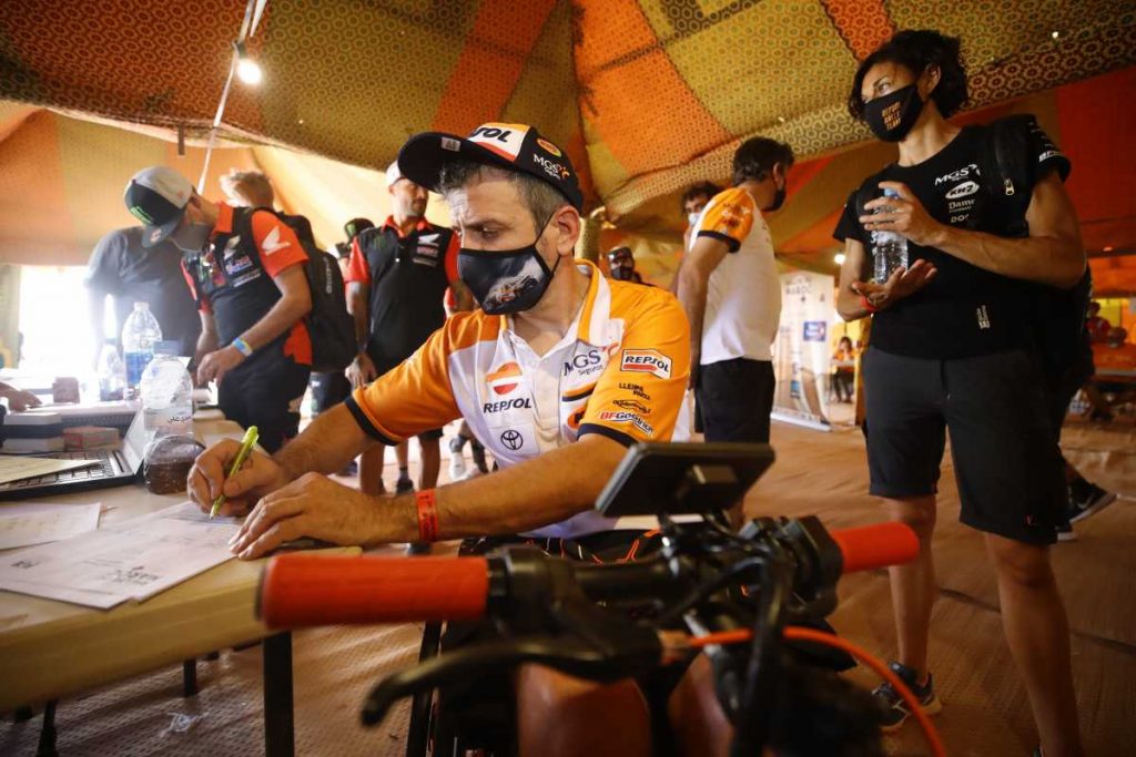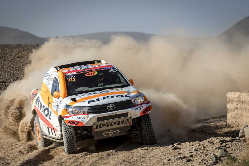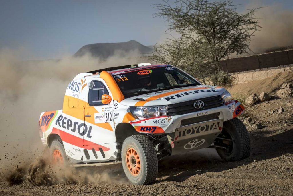 «Ha sido una prólogo con un principio y un final muy rápidos. En la mitad empezaban unas pistas con muchísima piedra, con un pasaje de unos pequeños ríos secos también pedregosos. En una apurada de frenada cuando íbamos rápido, hemos golpeado con una roca en una zona muy sucia, en torno al kilómetro 3 de la especial. A partir de ahí, se nos descolocaba mucho el vehículo, hasta que a un kilómetro y medio del final la cubierta se ha desprendido y hemos tenido que llegar a meta muy, muy despacio«, resumía el piloto de Oliana, apoyado por Toyota España, Repsol, MGS Seguros y KH-7.
