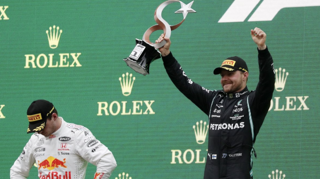 El piloto finlandés Valtteri Bottas (Mercedes) se ha impuesto este domingo en la carrera del Gran Premio de Turquía, decimosexta cita del Mundial de Fórmula 1, mientras que el neerlandés Max Verstappen (Red Bull), segundo, ha recuperado el liderato del campeonato, y los españoles Carlos Sainz (Ferrari), piloto del día tras recuperar once posiciones, y Fernando Alonso (Alpine) han finalizado octavo y decimosexto, respectivamente.