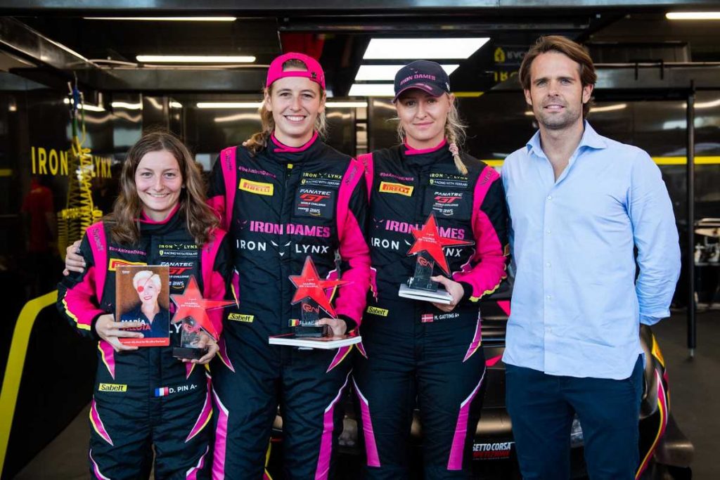 El Ferrari 488 GT3 nº 83 de Iron Lynx, pilotado íntegramente por chicas (Sarah Bovy, Doriane Pin, Michelle Gatting), participó en el Festival de la Velocidad de Barcelona luciendo en el coche y en los cascos la estrella de María de Villota, un bonito homenaje a la piloto que nos dejó hace ahora 8 años. En un simpático acto, Andy Soucek, embajador del Legado María de Villota, entregó a las pilotos el libro “La vida es un regalo”, que escribió María, junto con un bonito recuerdo con la forma de la famosa estrella.