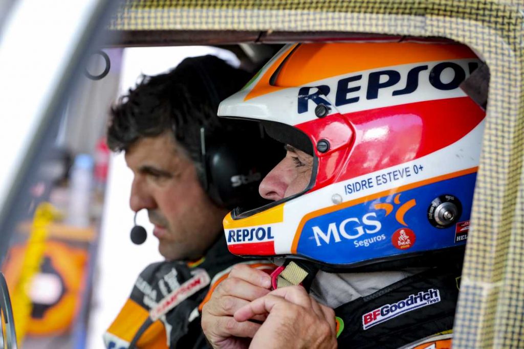 El piloto del Repsol Rally Team acabó muy satisfecho con el ritmo que fue capaz de imprimir durante buena parte de la jornada, que estuvo protagonizada por pistas rápidas y bacheadas, algún fuerapista entre rocas, varios cordones de dunas y un último tramo complicado de hierba de camello. En la especial más larga de la prueba (367 km contra el reloj), Esteve sacó el máximo partido de los ajustes de última hora que hicieron durante la noche en el aro acelerador del volante (necesario por su paraplejia) para extraer las máximas prestaciones de su Toyota Hilux Overdrive.