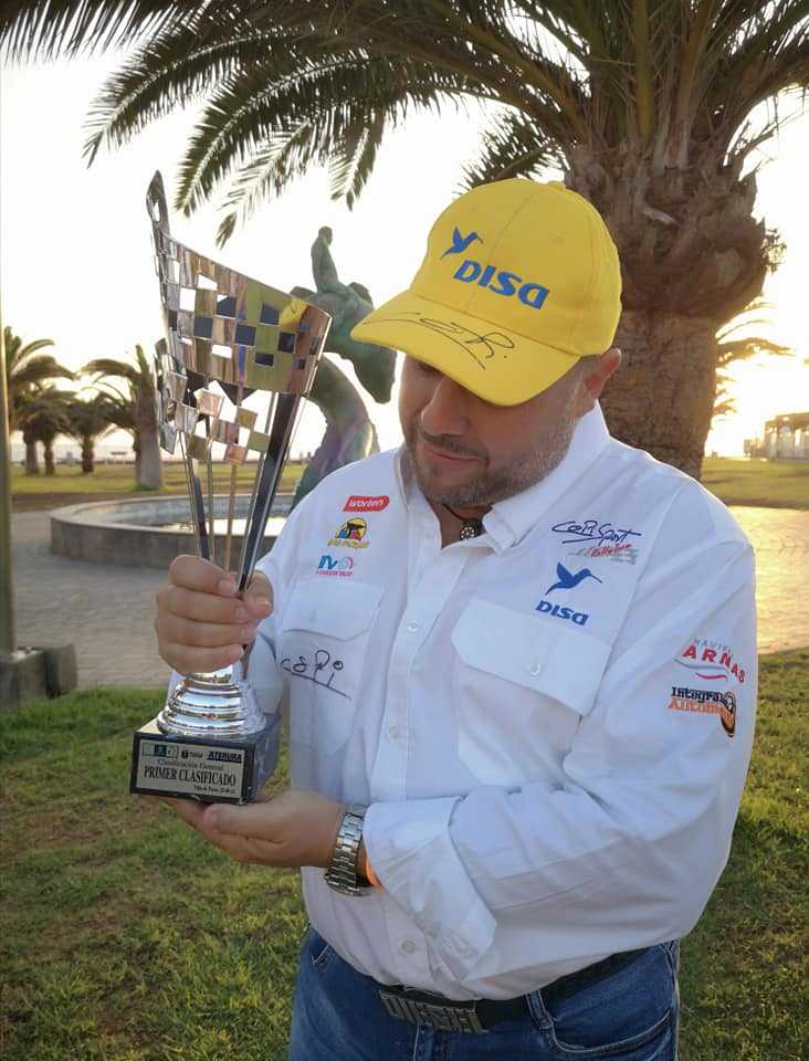 afirmó que vencería en la 40 edición del Rallye Villa de Teror y su pronóstico se cumplió, logrando, junto a su fiel copiloto, una brillante y contundente victoria y, además, dejando aún más las cosas en su sitio. Me prometió que el trofeo de primer clasificado vendría para mi museo y ahí está, ¡sueño cumplido!