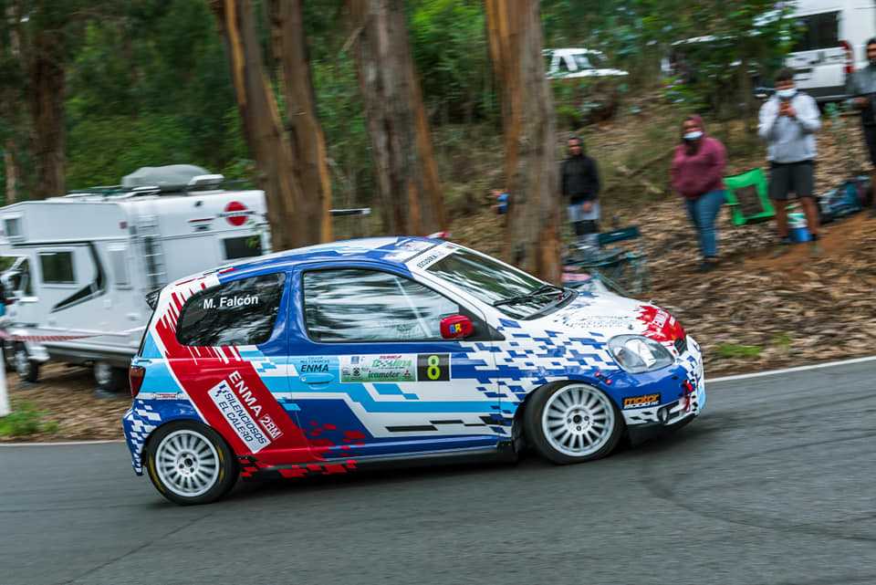 La pasada Subida Villa de Moya fue testigo de la espectacularidad del grancanario Miguel Ángel Falcón a los mandos de su Toyota Yaris T-Sport, pero un vuelco evitó que su disfrute fuera total.