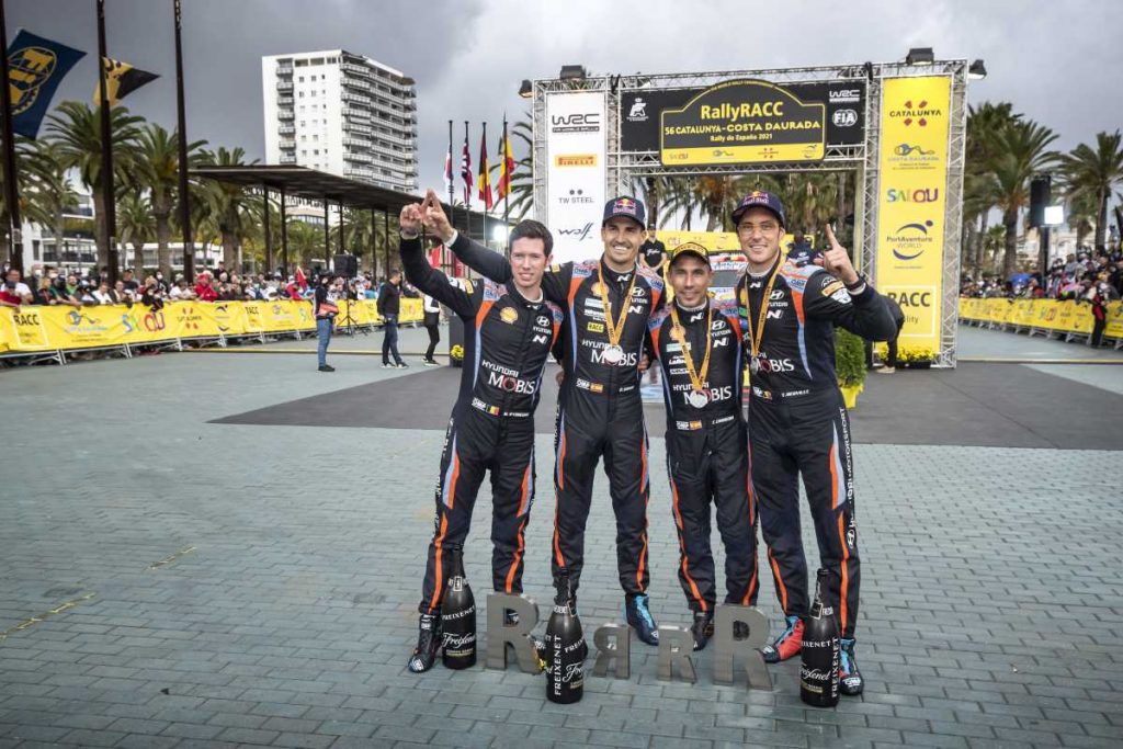 Aunque les haya tocado competir en esas circunstancias, calzados con un neumático de compuesto duro, Dani Sordo y Cándido Carrera han demostrado el coraje y el temple adecuados para encadenar su cuarto triunfo parcial consecutivo (el primero del año además para el cántabro en el tramo bonificado), y sentenciar así con honores su 50º podio mundialista; el noveno que festeja ya el cántabro ante los aficionados del Rally España-Catalunya, que han sido hoy testigos de un auténtico recital durante la última aparición en competición por parte del Hyundai i20 Coupé WRC sobre el abrasivo asfalto de las carreteras tarraconenses, en las que el español de Hyundai Motorsport ha vuelto a causar sensación este año.