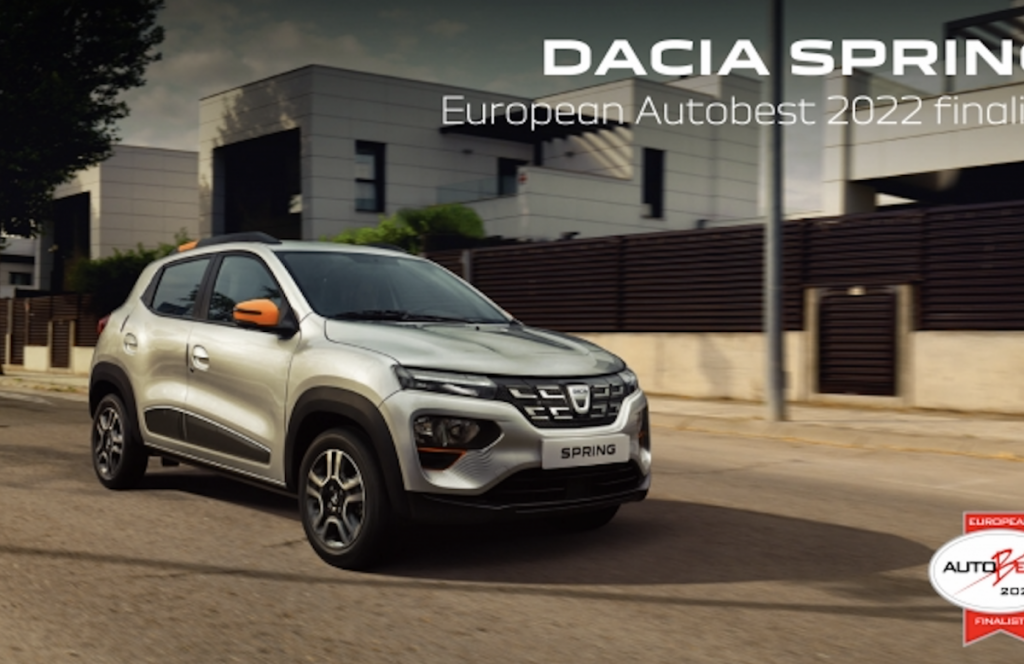 Dacia Spring ha sido nominado como finalista en AutoBest del gran premio Best Buy Car Europe 2022. Lanzado en marzo de este año, Dacia Spring representa la revolución eléctrica. Este vehículo pretende que la movilidad 100 % eléctrica sea accesible para todos y ofrece todo lo esencial (navegación, conectividad smartphone, climatización, elevalunas eléctricos…) a un precio imbatible en Europa.