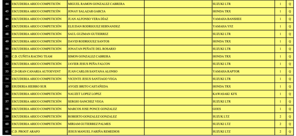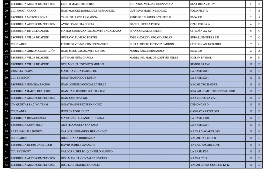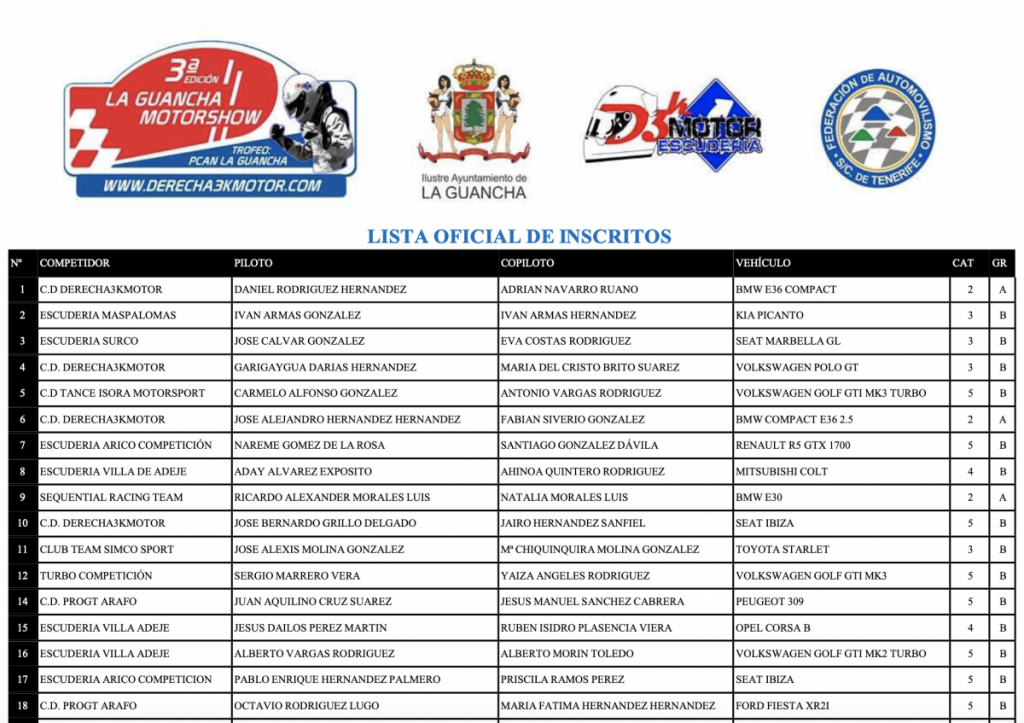Publicamos la lista de inscritos de la Prueba de Velocidad en Tierra La Guancha, a celebrarse este próximo domingo en Tenerife.