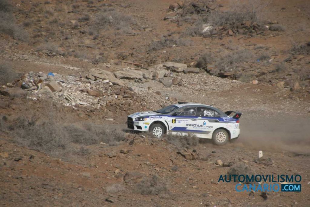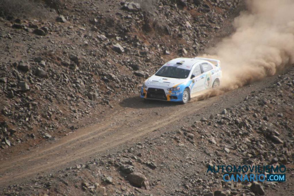 Los primeros líderes del rallye fueron Juan Carlos Quintana-Yeray Mujica, que desde el primer tramo imprimieron un ritmo alto, aunque ya el piloto se quejaba de unos extraños en el motor de su Mitsubishi Lancer Evo X. Un problema que fue en aumento y debían retirarse antes de la salida del TC4, tramo donde tomaban el liderato Jesús Tacoronte-Mariola Sáez con su Evo IX, que gracias a su scratch en dicha especial de Juan Grande-Bahía Feliz, pasaban del tercer al primer puesto en la general en ese momento con 7,8 segundos de ventaja sobre Gustavo Sosa-Ariday Bonilla, que venían conservando ganas de correr para preservar la mecánica de su Skoda Fabia R5, mientras Borja Pérez-Jonathan Hernández tomaban el tercer lugar del podio con otro Evo X, pero ya a 42 segundos del nuevo líder.