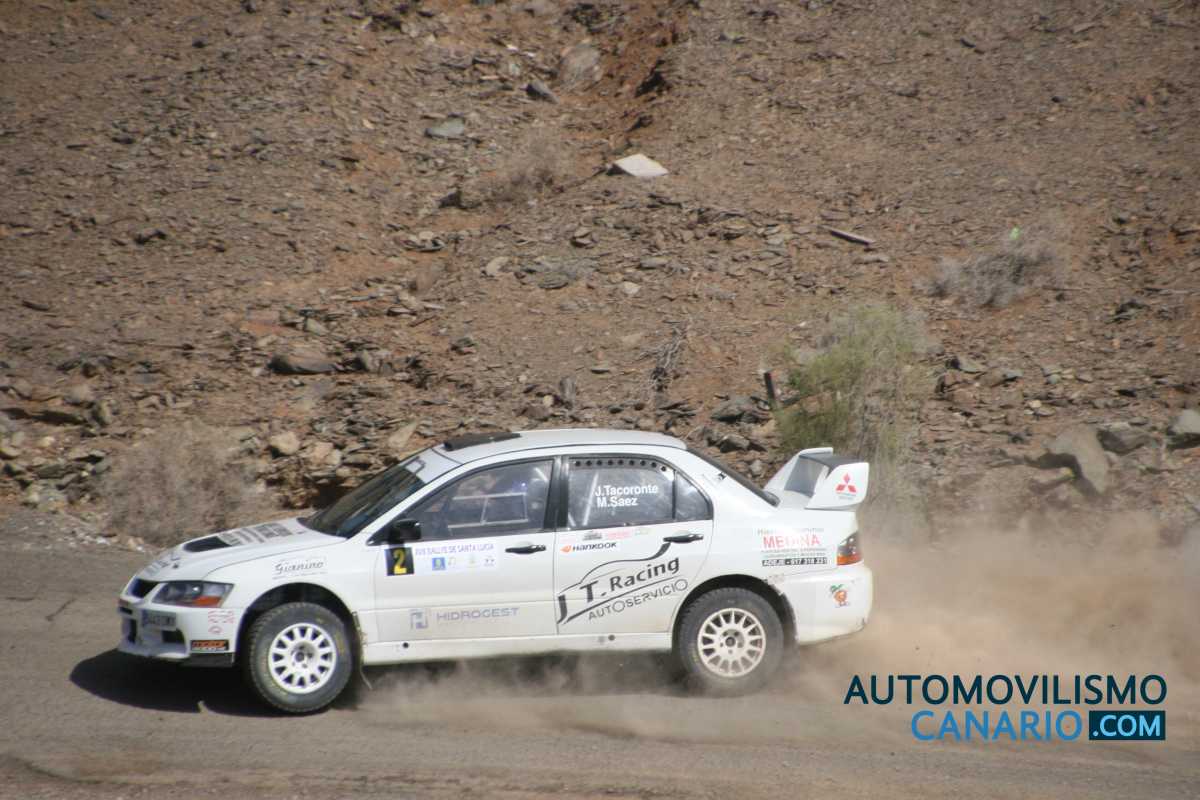 El tinerfeño Jesús Tacoronte y la copilota grancanaria Mariola Sáez (Mitsubishi Lancer Evo IX) han sido los ganadores finales del XVII Rallye de Tierra Santa Lucía de Tirajana, por solo dos segundos de ventaja sobre sus directos rivales. Con este nuevo triunfo -ganaron en mayo el Rallye Isla Verde de La Palma-, la pareja Tacoronte-Mariola refuerzan su liderato en el Campeonato de Canarias, donde ya rozan el título a la espera de la última cita en Fuerteventura. La prueba fue más dura de lo esperado y por el camino se quedaron pilotos de la talla de Juan Carlos Quintana, Iván Marrero, Benjamín Avella o Yeray Lemes, entre otros.