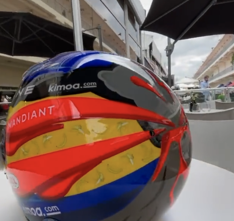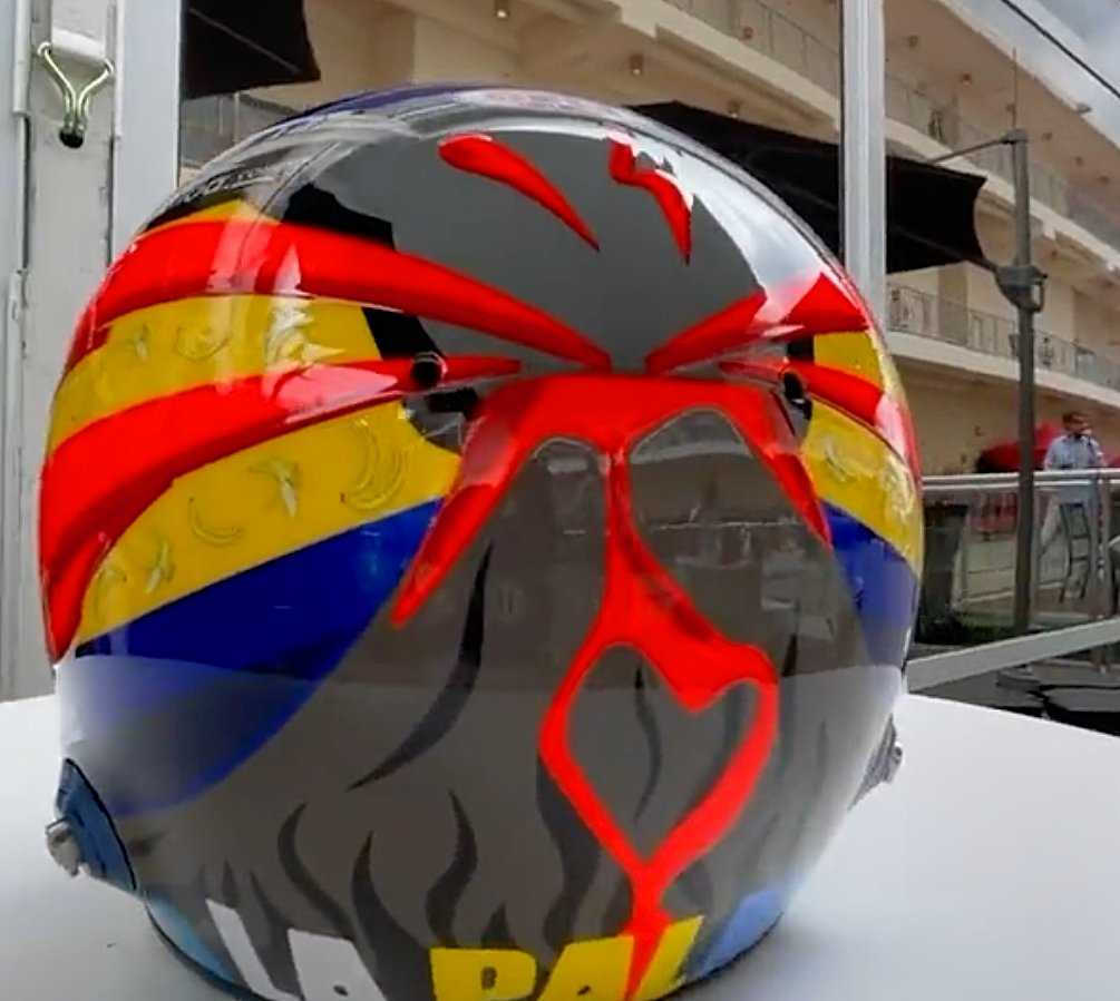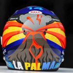 Fernando Alonso dio días atrás unas pinceladas del diseño especial que lucirá este fin de semana en el GP de Estados Unidos en apoyo a los afectados por la erupción del volcán de La Palma. Y el asturiano mostró la totalidad de su casco para este fin de semana, con un volcán en su parte trasera acompañado de un gran ‘La Palma’ y una bandera canaria en el lateral.
