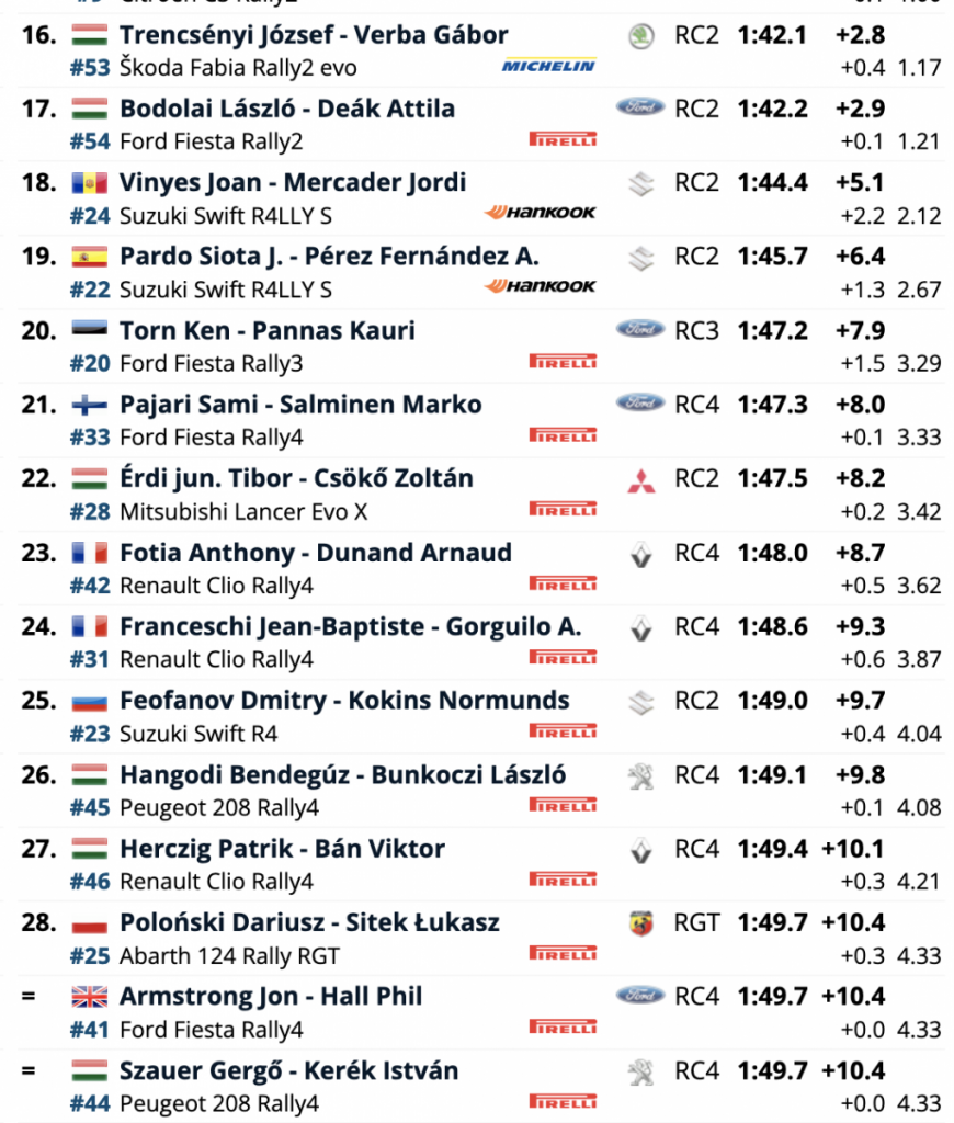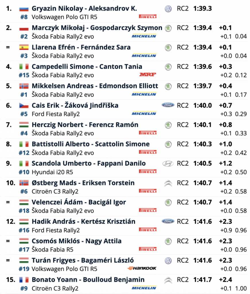 Miko Marczyk, del equipo de Orlen, fue 0,1 segundos más lento que Gryazin cuando venció al líder del ERC, el noruego Andreas Mikkelsen, en su batalla con ambos coches en el trazado.