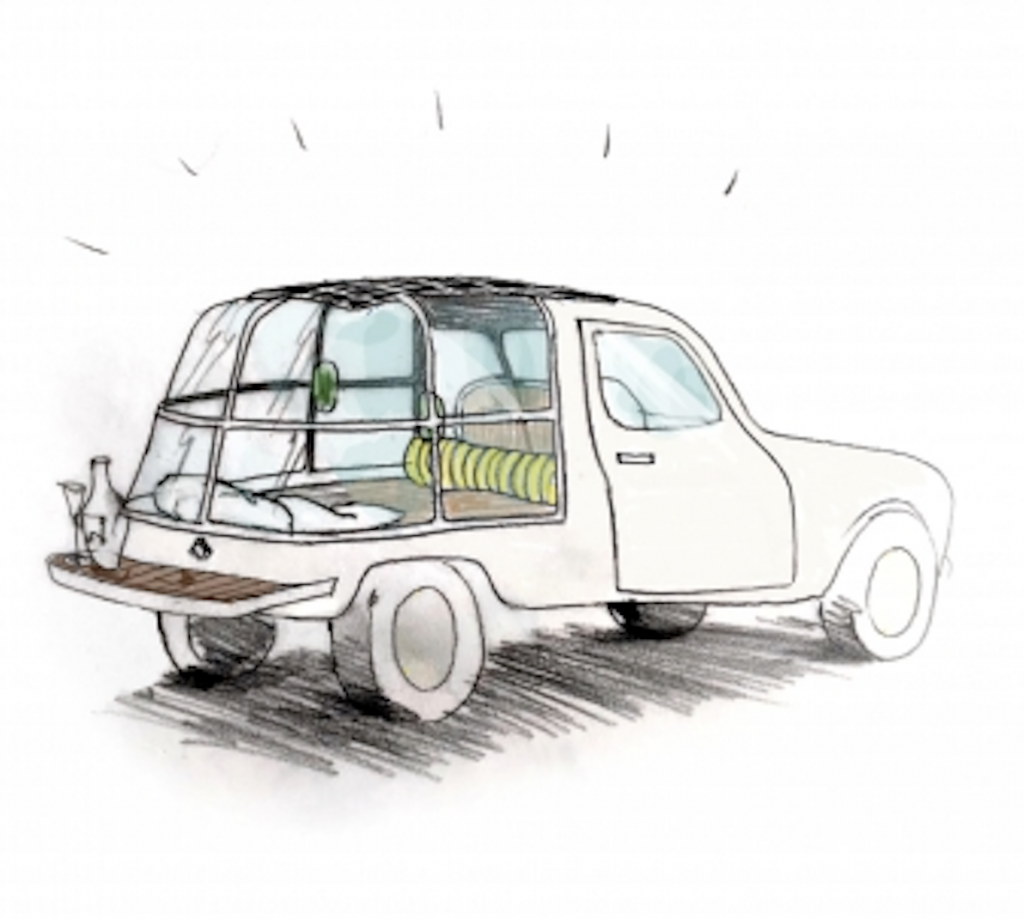 En el interior, Mathieu Lehanneur optó por dar paso al ambiente y a los materiales de una vivienda y combinar las exigencias técnicas del automóvil con la sofisticación de cierto art de vivre a la francesa. Los asientos y el salpicadero están tapizados de un chispeante terciopelo amarillo. En contraste, el espacio trasero luce un tejido grueso de chenilla de aspecto canalé y dos apliques luminosos que le dan un aspecto robusto. El maletero, transformado en una habitación móvil, se llena de almohadas y cojines. La experiencia resulta perfecta con un banco de madera deslizante que se abre como un cajón extraíble y queda protegido una vez que se abre el portón. Como el 4L en su época, todos los tejidos son «made in France» y han sido realizados por artesanos parisinos.