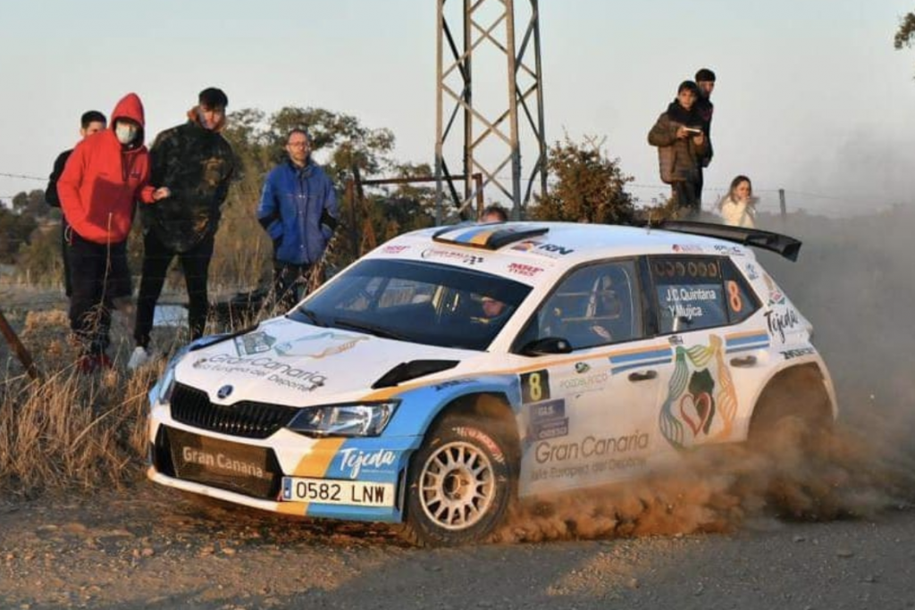 Un vuelco en el Rally de Pozoblanco propició que los grancanarios Juan Carlos Quintana y Yeray Mujica (Skoda Fabia Rally2), líderes de la Copa de España de Rallys de Tierra, tuvieran que abandonar.