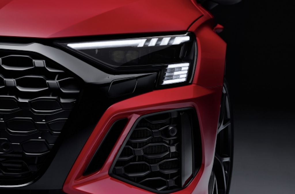 - Faros LED y luces traseras LED de serie; faros matrix LED opcionales con luz diurna digital. Secuencias lumínicas específicas RS 3 para los grupos ópticos delanteros y traseros en los matrix LED.