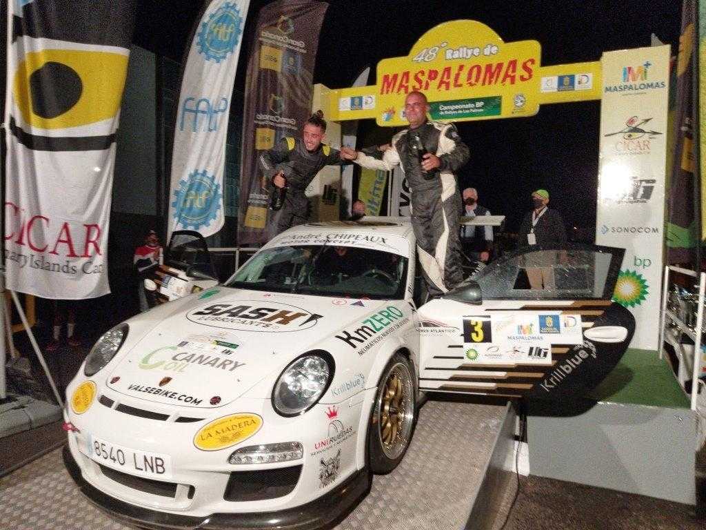 Importante triunfo en el Rallye de Maspalomas del equipo de los Iván Armas (padre e hijo), que dominaron la clasificación de la prueba llevando su Porsche 911 GT3 como líderes, desde el segundo al último de los ocho tramos cronometrados. Una actuación con la que no dejaron ninguna duda a sus rivales de las intenciones de anotarse su primer rallye de esta temporada en el Campeonato BP de Las Palmas 2021. Los Armas se impusieron en cinco de las ocho especiales, logrando 14,3 segundos de ventaja en el cómputo final sobre los siguientes componentes del podio de este rallye ya de leyenda. De esta forma, Iván Armas suma la segunda victoria en su palmarés del «Maspa» tras la cosechada en la edición de 2017.