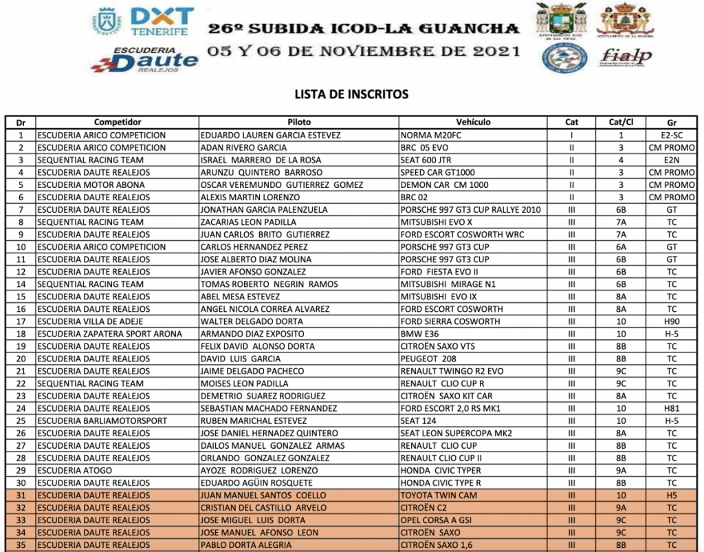 Publicamos la lista de inscritos de la 26ª Subida Icod-La Guancha, evento que se celebrará este sábado en el norte de Tenerife.