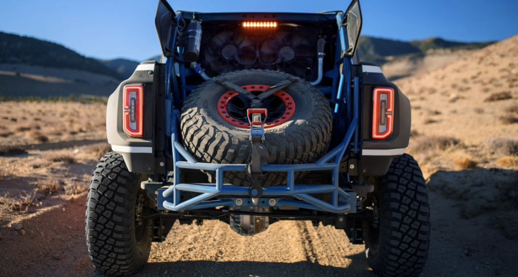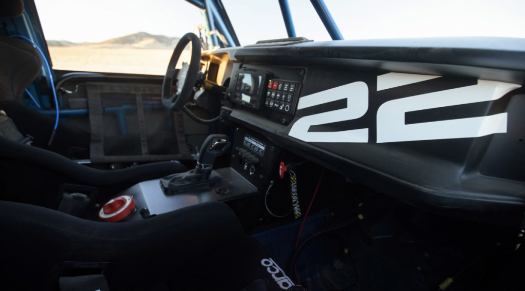 Para obtener la máxima rigidez, durabilidad y protección de los ocupantes, Multimatic realizó extensas simulaciones analíticas en la ingeniería y optimización de la estructura antivuelco de Bronco DR compatible con SCORE y la estructura de chasis y bastidor altamente modificada. El diseño final conserva los rieles de techo ACCRA® de acero al boro endurecidos por soplado fabricados con Multimatic y fabricados por Bronco.