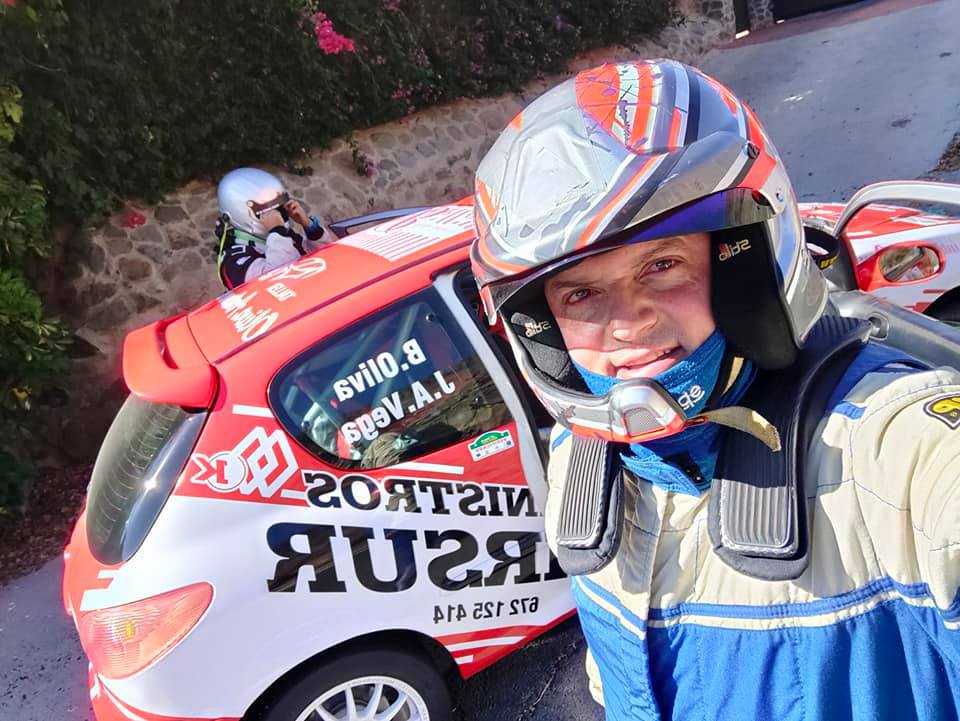 No pudo faltar mi hija Leticia Oliva Godoy, que pronto la veremos con el casco, y mi yerno Pablo, y ese copiloto José Antonio Vega Quintana, que sin conocerme como piloto y persona no dudó en subirse a la derecha y empezar a darlo todo desde el minuto uno y que cada día que ha pasado se ha involucrado más, llegando a decir que por su parte quiere seguir con nosotros.