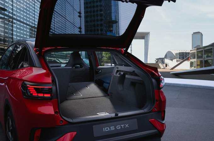 El nuevo estilo de la carrocería y el concepto espacial tipo ‘lounge’ ponen de manifiesto la fuerza innovadora de Volkswagen y su familia ID. A pesar de su silueta coupé, el ID.5 tiene solo 12 mm menos de espacio para la cabeza en la parte trasera que el Volkswagen ID.4. La larga distancia entre ejes de 2.766 mm facilita unas condiciones espaciales interiores comparables a las de los SUV de categorías superiores. El volumen del maletero es de 549 litros y los materiales, así como la fabricación del vehículo, son de primera calidad. Los materiales de revestimiento de los asientos varían en función de la versión interior. Los asientos Top Sports opcionales se distinguen por los logotipos de identificación perforados en la parte superior de los respaldos.