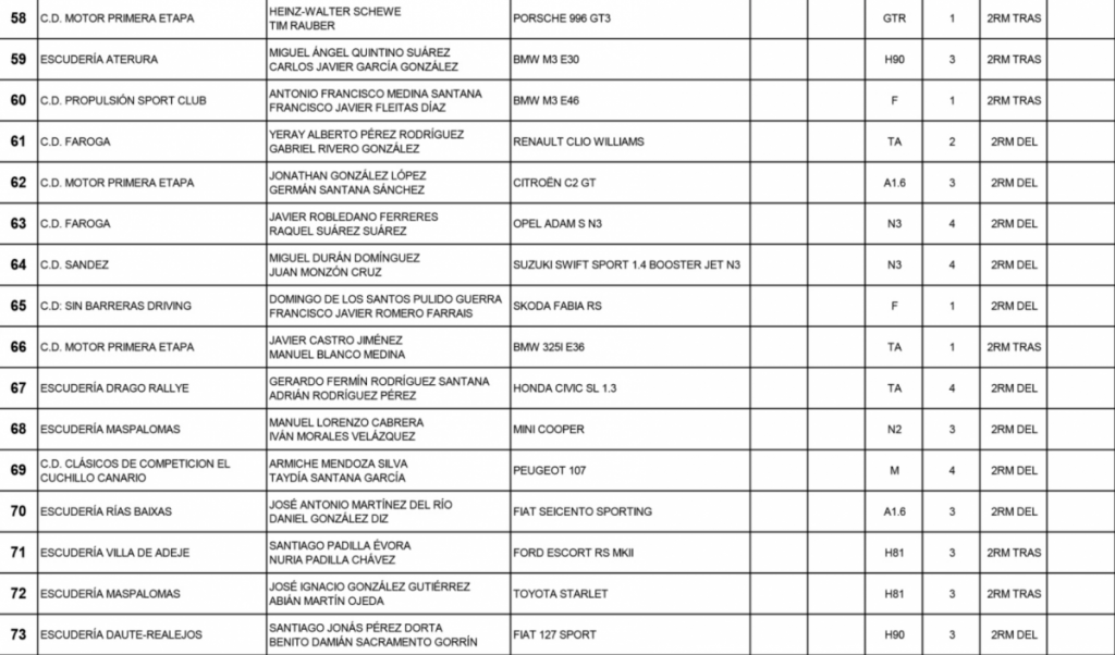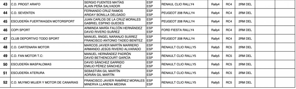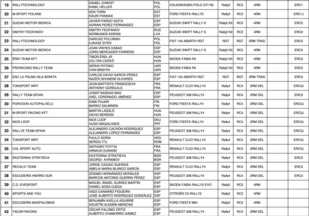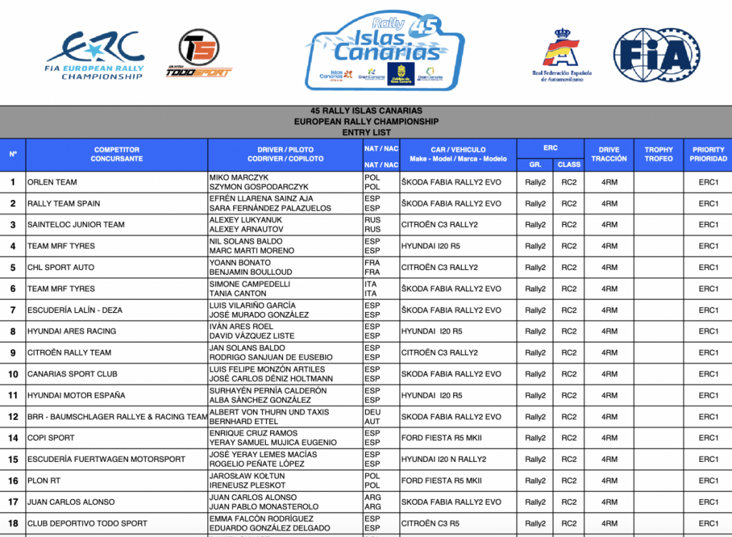 Publicamos la lista de inscritos del Rally Islas Canarias, cita del Campeonato de Europa, España, Canarias y Las Palmas de Rallys.