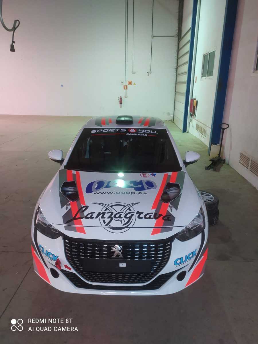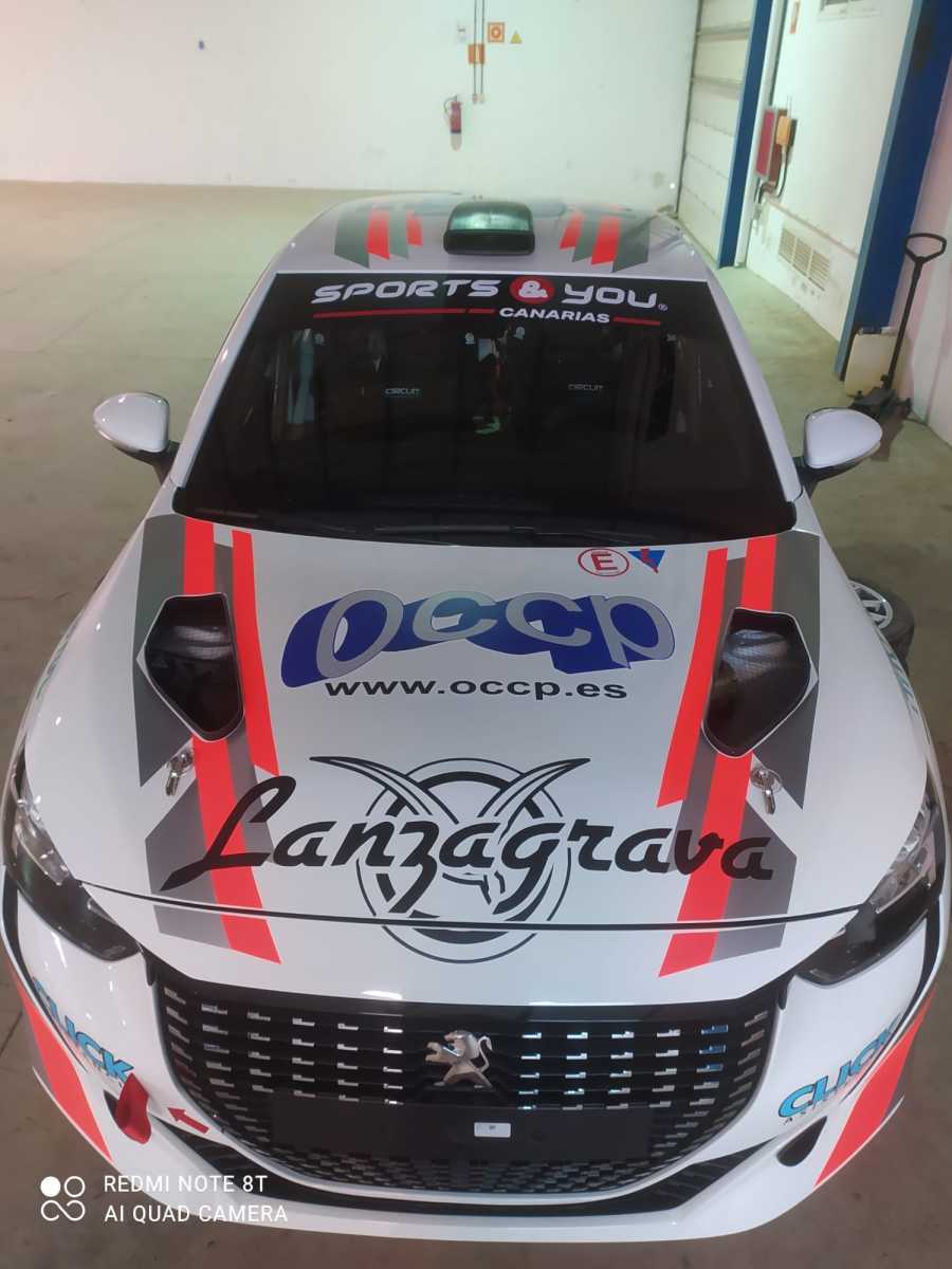 El Peugeot 208 Rally4 con el que correrán el lanzaroteño Juan Carlos De La Cruz y el grancanario Gabriel Espino en el próximo Rally Islas Canarias ha sido rotulado.