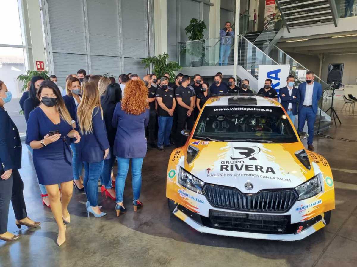 Las instalaciones del Grupo Rivera en Telde fueron el escenario elegido para la puesta de largo de la decoración especial que el piloto de RaceSeven lucirá en el Skoda Fabia Rally2 Evo para pelear por el triunfo dentro del Campeonato de Canarias de Rallyes.