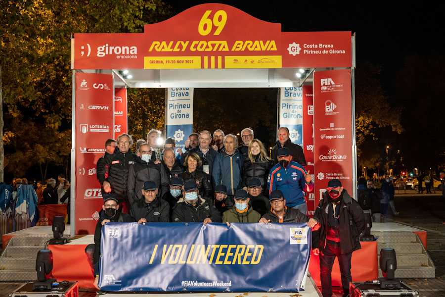 Justo antes del paso de los coches por el podio de salida se ha celebrado un acto para conmemorar el FIA Volunteers Weekend, la fecha anual en la que la Federación Internacional de Automovilismo rinde homenaje a los oficiales y voluntarios que hacen posible las pruebas automovilísticas en todo el mundo. En dicho acto han participado los vencedores del Rally Costa Brava que participan en esta edición y un grupo de voluntarios en representación de las 400 personas que ayudan en la organización de este rally.