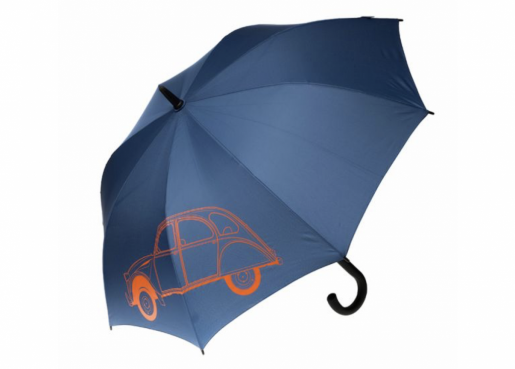 La ë-Boutique Citroën también te ofrece la posibilidad de lucir tu pasión por el mítico vehículo francés incluso en los días de tormenta. El paraguas Citroën Origins 2CV, decorado con la silueta del icónico coche galo, dispone de apertura automática, ballenas de fibra de vidrio (que aportan una mayor ligereza y son capaces de resistir fortísimas rachas de viento sin inmutarse) y un mango suave al tacto para conseguir un mejor agarre. Disponible en un elegante azul marino y un provocativo naranja, el paraguas tiene una altura de 83 cm y un diámetro de lona (de poliéster Pongé) de 106 cm, lo que produce un espacio seco capaz de albergar cómodamente a dos personas de tamaño medio.