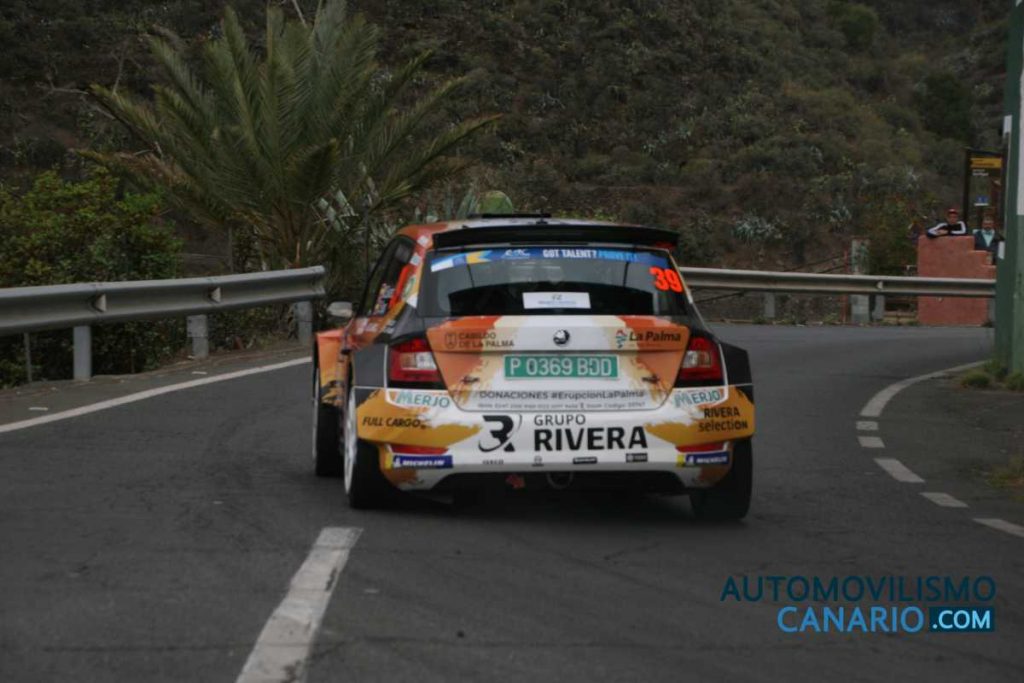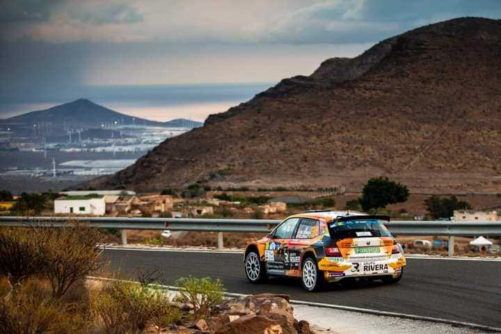 El palmero Miguel Suárez y el grancanario Dani Sosa (Skoda Fabia Rally2 evo) eran terceros del Campeonato de Canarias de Rallys, pero un pinchazo les relegó a la cuarta plaza.