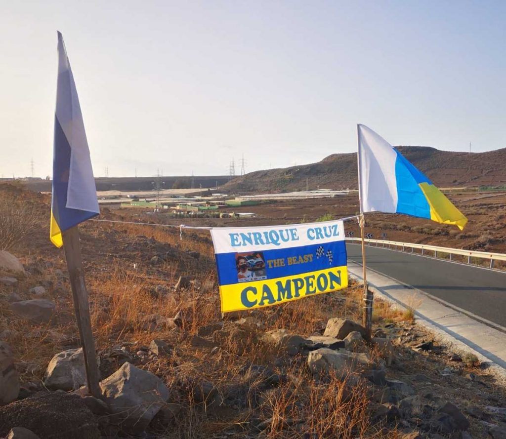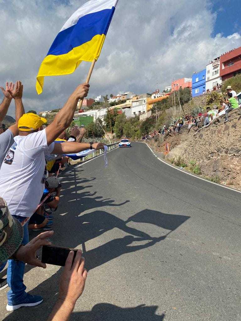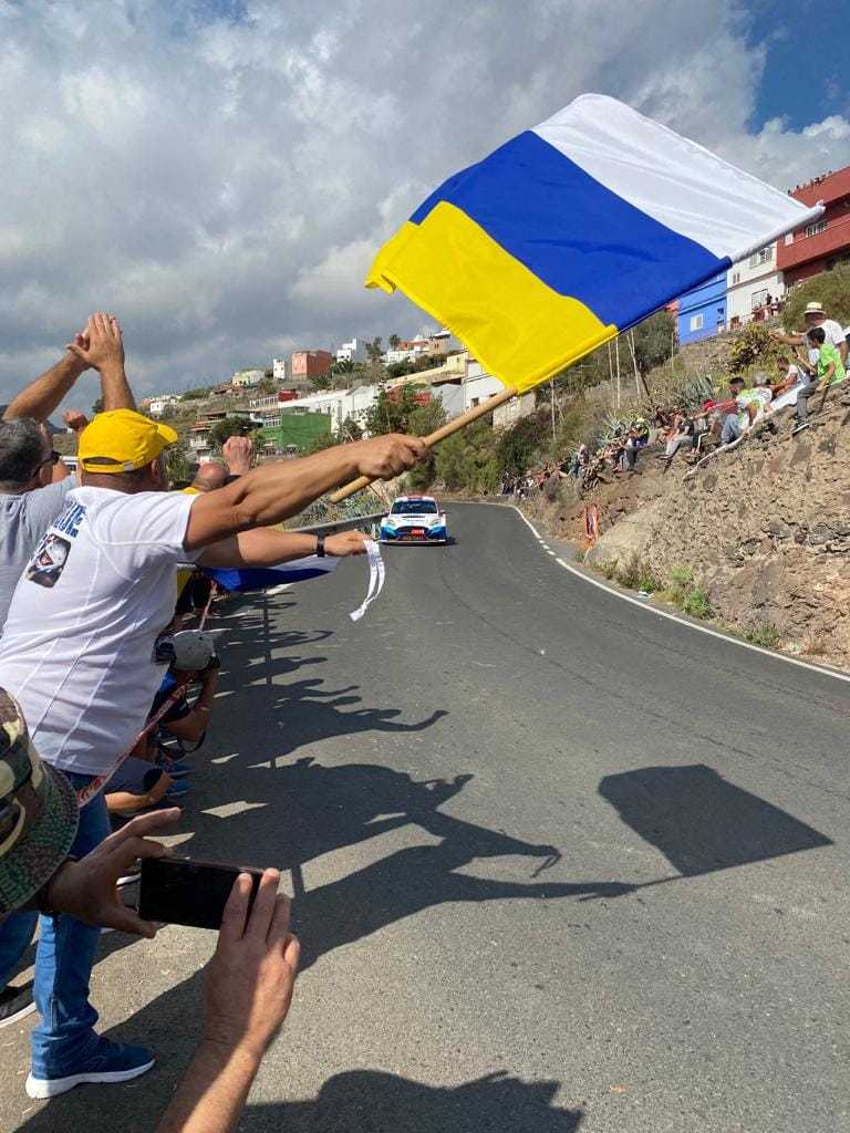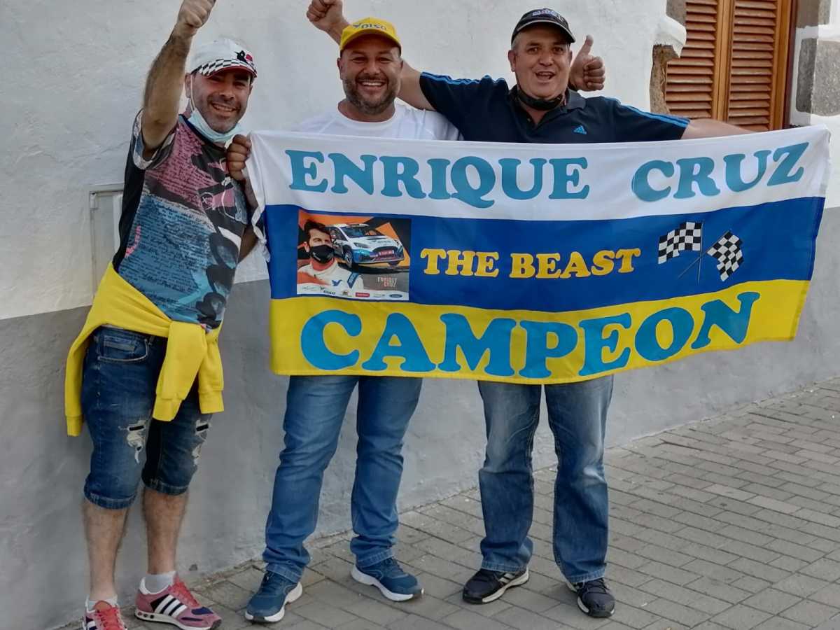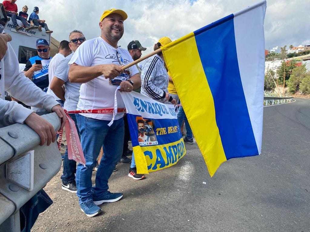 El aficionado grancanario Juan Manuel Hernández se ha significado de un tiempo a esta parte como gran seguidor del piloto tinerfeño Enrique Cruz, al que sigue con su bandera de apoyo. Por eso, en este pasado Rally Islas Canarias era un hombre feliz.