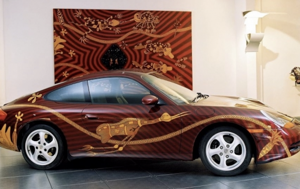 Pintado a mano, en 1998, en la sala de exposiciones del Centro Porsche de Melbourne por el artista indígena australiano Graham J Rennie (conocido como Biggibilla), este 911 Carrera (996) se expone ahora con orgullo y de forma permanente en el Museo Porsche de Stuttgart (Alemania). Si visita el palacio de la historia de Porsche podrá contemplar este mural sobre ruedas, con su inquietante evocación del arte de los antiguos.
