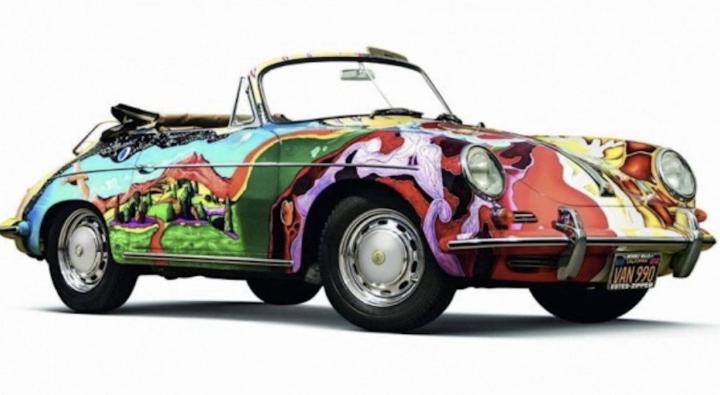 La leyenda del rock Janis Joplin cantó «Todos mis amigos conducen Porsches», pero en realidad ella misma tenía unos cuantos. Compró este coche en 1968, en color Gris Delfín (uno de los nueve disponibles en aquella época), y lo utilizó como medio de transporte diario. Describir el 356 SC de 1964 como un coche con una pintura muy colorida es quedarse corto. Janis pagó a su ayudante, David Richards, 500 dólares para que plasmara en el coche la «Historia del Universo» con casi todos los tonos posibles. Una historia que incluía imágenes de su banda, Big Brother and the Holding Company, paisajes californianos, el ojo de Dios, Capricornio, calaveras, setas y mucho más. El resultado es un vehículo que pide a gritos ser visto. Llegó a ser tan identificativo de su dueña que los fans le dejaban notas bajo el limpiaparabrisas. Cuando lo robaron, en 1969, el ladrón trató de ocultar su delito pintándolo con espray, pero la policía lo atrapó.