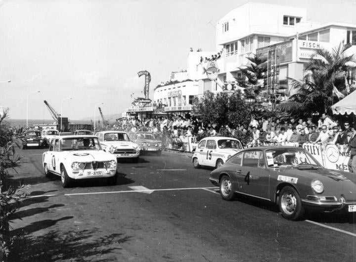 Complementamos la información con tres imágenes que sintetizan la trayectoria deportiva de Tomás. Una, obtenida por Mario Campos, en su etapa sobre el Fiat-Abarth 1000 (inicio de una de las carreras programadas con ocasión del IV Circuito del Puerto de la Cruz, 1968); la fase intermedia consagrada a los Lancia (unidades Fulvia HF 1.6 y Beta 2000-Coupe -en la fotografía-) y, posteriormente, sus épicas confrontaciones sobre el Mercedes 190-E 2.3/16v (foto de José Manuel Nuez).