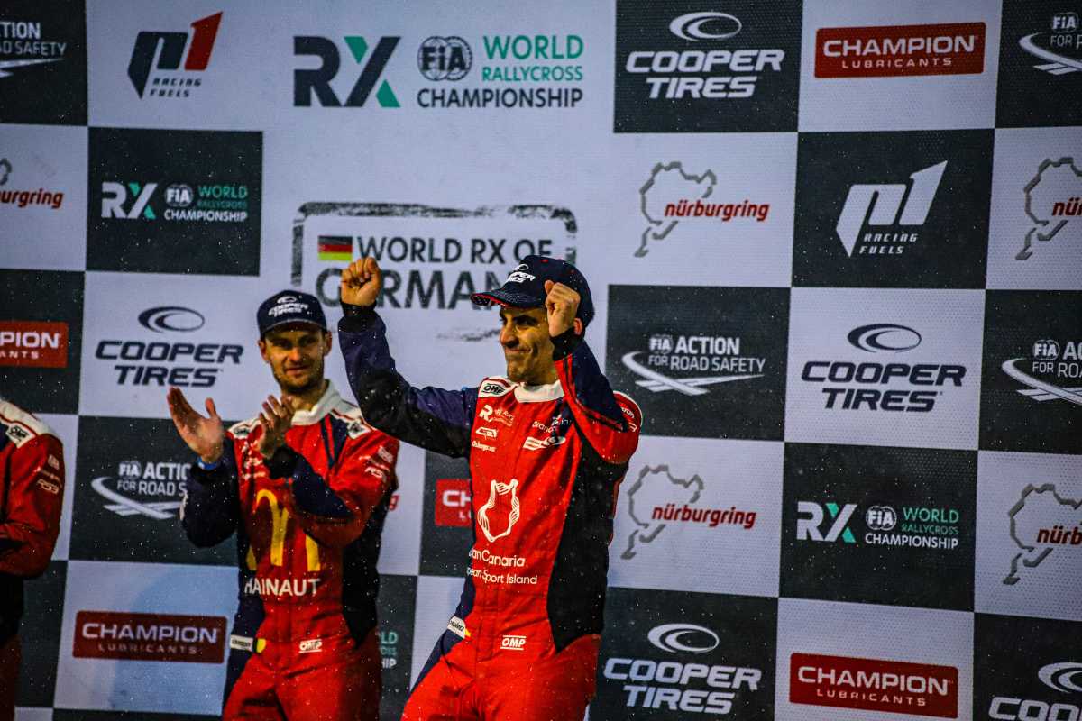 “Ha sido un fin de semana de emociones muy fuertes, desde verme en la peor situación posible en las clasificatorias hasta ser capaz de darle la vuelta a todo y cerrar mi primer podio en un evento de RX2e y además el podio del campeonato, un logro que aun no acabo de asimilar. Agradecer a mi spotter, Juli Mundet, que me ayudó mucho en un fin de semana que se complicó desde el principio y me guió en la final como si llevase un copiloto a mi derecha, le debo el podio sin lugar a dudas.” relataba emocionado el grancanario.