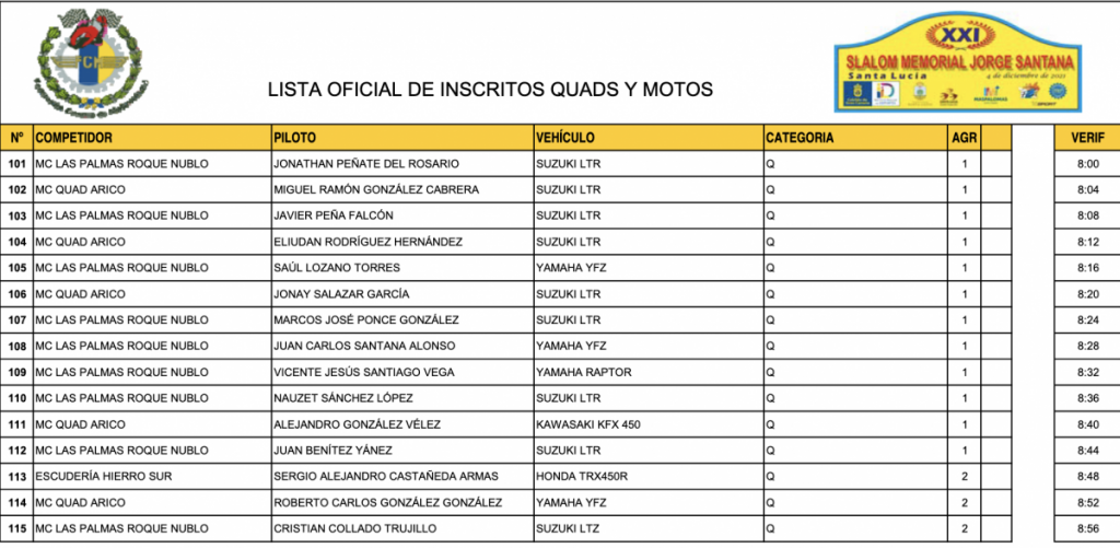 Lista de inscritos del XXI Slalom Memorial Jorge Santana Por Rafa León Última actualización: 02/12/2021 14:15 Compartir FacebookTwitterWhatsAppEmailTelegramLinkedin Publicamos la lista oficial de inscritos del XXI Slalom Memorial Jorge Santana (Gran Canaria). Lista en PDF linscritos campeonato de canariasCampeonato de Canarias de SlalomsCampeonato de Las PalmasEspañaGran CanariaLas PalmasSlalom Memorial Jorge Santana Compartir