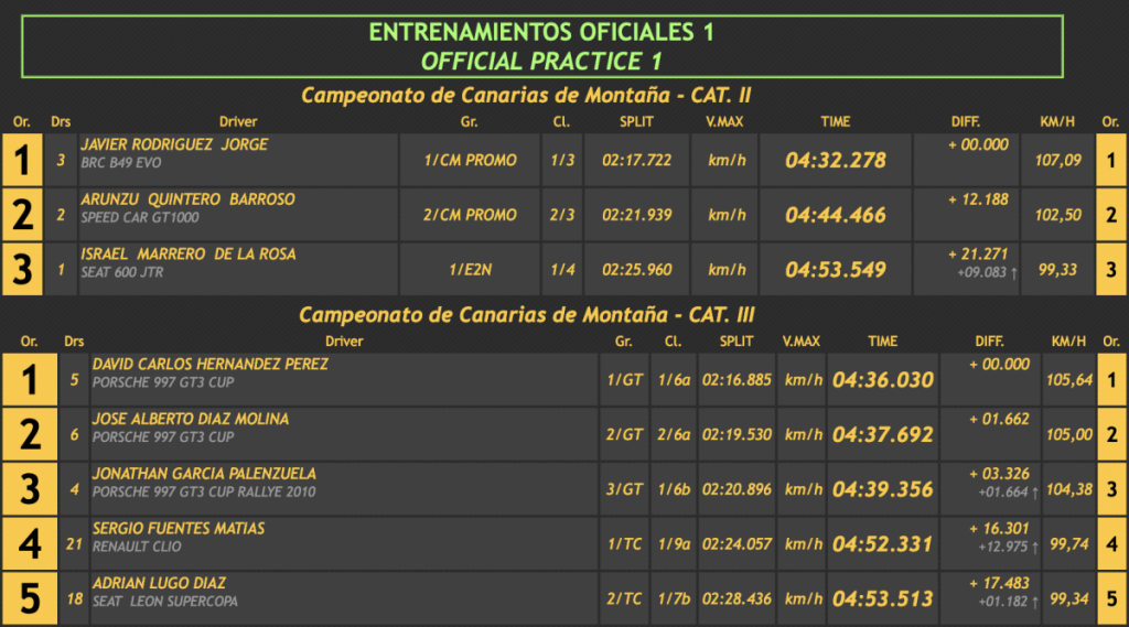 La manga de entrenamientos de la Subida Los Loros 2021 ha sido testigo del mejor crono de Javier Rodríguez con su nueva BRC B49 EVO entre las barquetas, mientras que el ex campeón de España de Montaña, Carlos Hernández (Porsche 997 GT3 CUP), ha sido el más rápido entre los turismos.