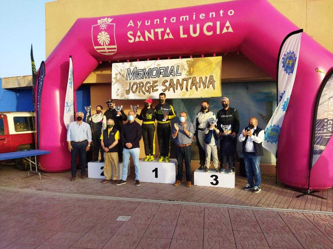 Brillante final del Campeonato Insular de Gran Canaria con el XXI Slalom Memorial Jorge Santana disputado este sábado en Santa Lucía de Tirajana, en un tramo comprendido entre la localidad de Pozo Izquierdo y el Barranco de Tirajana, con la participación de más 60 equipos entre coches, car-cross y quads. Una prueba donde destacaron las victorias de Jesús Tacoronte-Mariola Sáez (Mitsubishi Lancer Evo IX), Miguel Santana (Kincar Cross) y Jonathan Peñate (Suzuki LTR). La prueba organizada por el CD. Evesport contó con la importante colaboración del Ayuntamiento de Santa Lucía, cuyo alcalde Francisco García acompañado del concejal de Deportes Pedro Sánchez, presidieron la ceremonia de entrega de trofeos final.