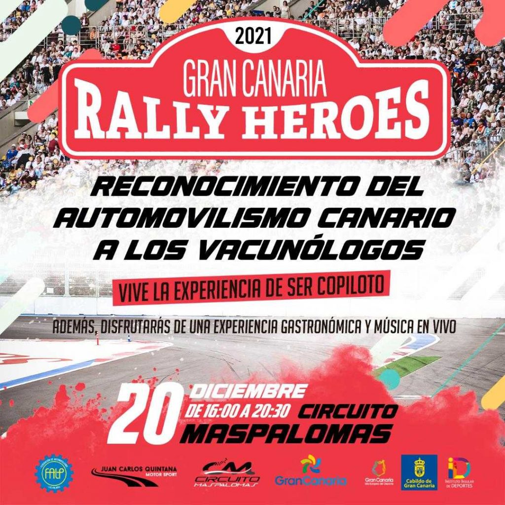 Son varios pilotos los que han querido sumarse al Gran Canaria Rally Héroes 2021. Yeray Lemes, Pedro Cuarental, Julio Martínez, Nolito García, Sene Cazorla y Juan Carlos Quintana, piloto promotor de esta iniciativa solidaria. Durante el evento se desarrollará una experiencia gastronómica dirigida por el chef Borja Marrero que un año más ha querido sumarse al evento, asimismo, los asistentes tendrá oportunidad de disfrutar de una actuación musical a cargo del grupo canario Overbooking.