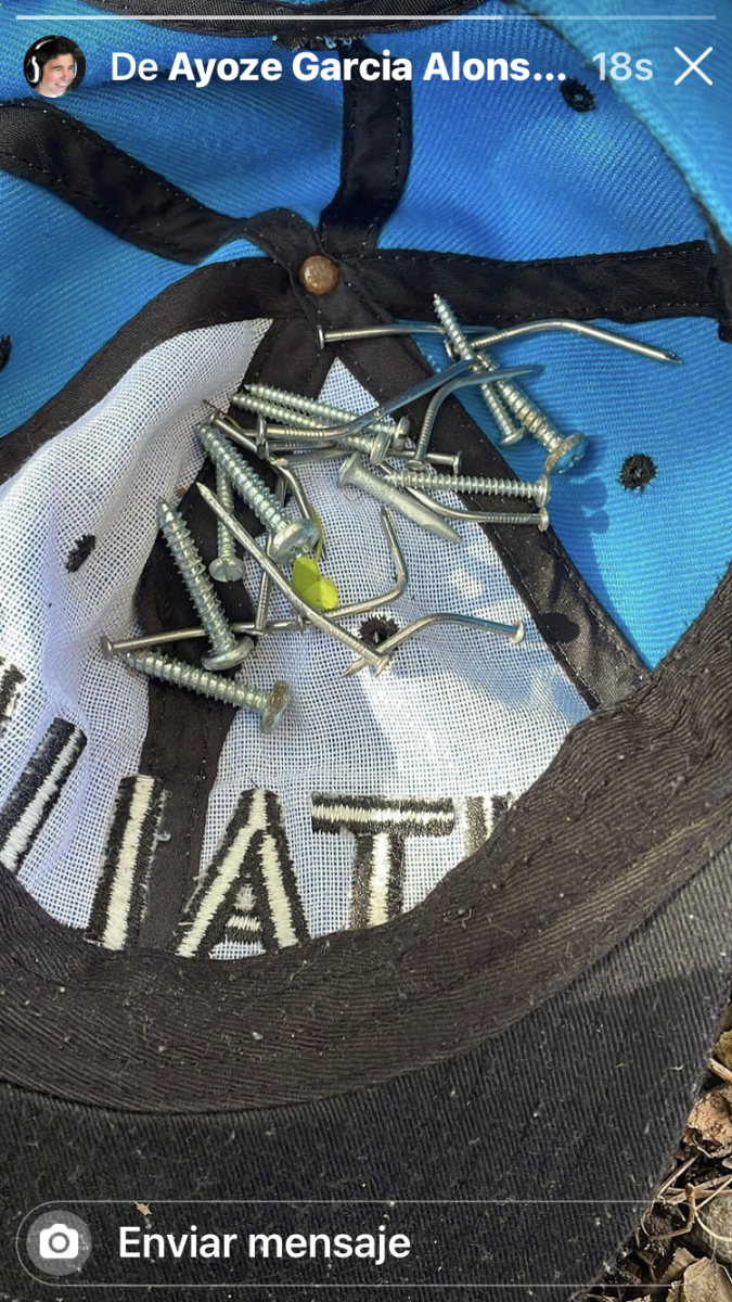 Según nos explicó Ayoze García, «llegamos a primera hora de la mañana, sobre las 7:15 horas, al tramo y vimos un par de clavos y tornillos; un amigo mío y yo nos pusimos a quitarlos, pero al rato vimos un montón más dentro de la curva, y la pena es que no vimos quién pudo ser», lamenta.