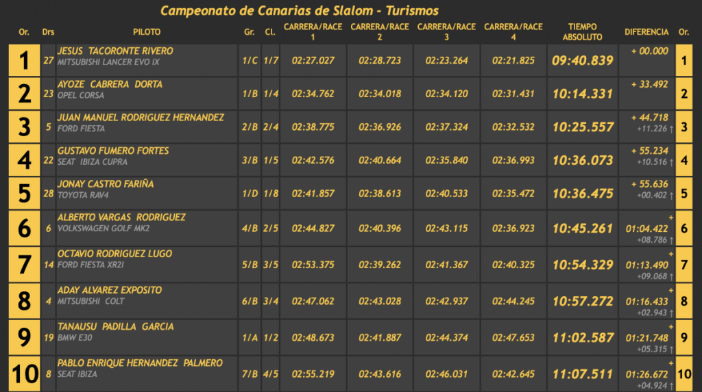 Segundos eran Ayoze Cabrera-Daniel Sierra con el Opel Corsa a 33.492 segundos de la cabeza, teniendo todo de cara para ser terceros Conrado Tacoronte y Iván González (Citroën AX 4X4), pero una avería lo impidió, ocupando el último escalón del podio Juan Manuel González y Gustavo Martín (Ford Fiesta XR2i).