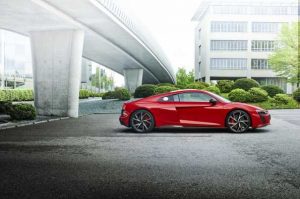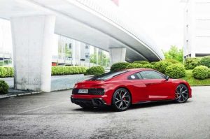 Este deportivo con motor central acelera de cero a 100 km/h en 3,7 segundos (Spyder: 3,8 segundos) y alcanza una velocidad máxima de 329 km/h (Spyder: 327 km/h). La joya de la corona del nuevo R8 es el motor V10 FSI atmosférico de 5,2 litros, con un sonido inigualable y una rapidísima respuesta al acelerador. En el R8 V10 performance RWD la potencia alcanza 419 kW (570 CV) con un par máximo de 550 Nm, que se transmite a las ruedas traseras a través del cambio S tronic de siete velocidades. Esto supone 10 Nm más de par que el Audi R8 V10 RWD.