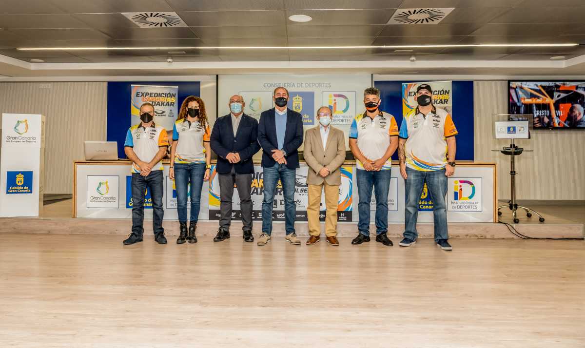 La sala de prensa del Gran Canaria Arena ha sido el escenario elegido para la presentación de la pionera Expedición Canarias Dakar 2022, con Pedro Peñate y Rosa Romero al frente, en una multitudinaria rueda de prensa que contó con la participación de Manuel López (Director General de Deportes), Francisco Castellano (Consejero de Deportes del Cabildo de Gran Canaria) y Miguel Ángel Domínguez (Presidente de la Federación de Automovilismo de Las Palmas).