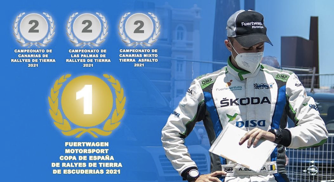 El copiloto lanzaroteño dio por finalizada su temporada 2021 tras el accidente sufrido en el Rally Islas Canarias junto a Fernando Cruz (Peugeot 208 Rally4), logrando finalizar con tres subcampeonatos.