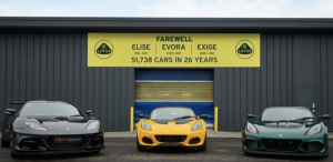 Lotus conmemora el fin de la producción de los coches deportivos Elise, Exige y Evora después de alcanzar las 51.738 unidades fabricadas durante 26 años, las líneas de montaje se desmantelarán en preparación para aumentar la producción del nuevo Lotus Emira; y las mismas líneas de ensamblaje también construyeron 9,715 autos para clientes externos, incluidos GM y Tesla.