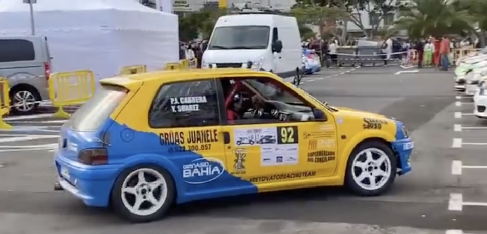 El piloto tinerfeño Pedro Jesús Cabrera se piensa si darle un cambio de rotulación a su pequeño y rápido Peugeot 106 1.6 8V Rallye, por lo que el amarillo y el azul podrían dejar paso a un cambio de imagen, lo que no sabemos si será radical o discreto…