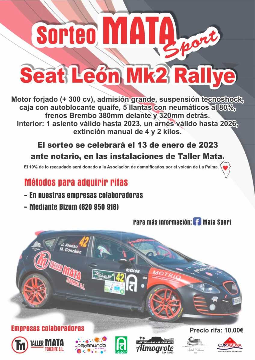 El piloto tinerfeño Javi Alonso, del Mata Sport, ha puesto su Seat León a la ‘venta’ por medio de una rifa.