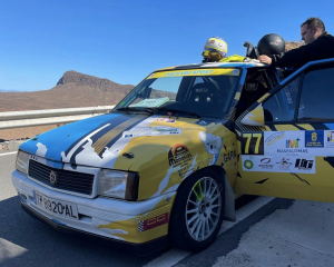 De buscarse la vida trata esto del deporte cuando los recursos son los que son. Y eso es lo que hace el equipo formado por los grancanarios Agustín León y Juan Antonio Santana (Opel Corsa), que realizan un sorteo para acercar a los aficionados al mindo dle motor.