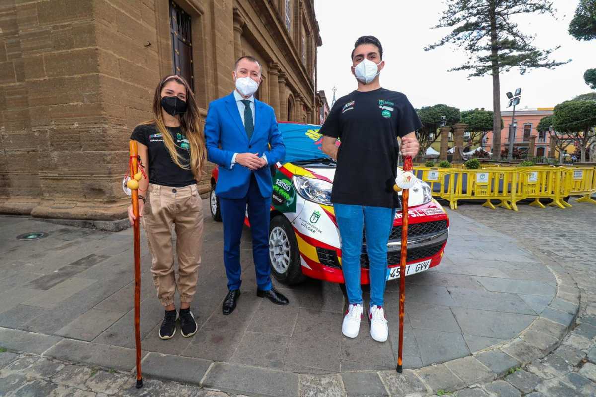 Teodoro Sosa recibe a Armiche Mendoza y Taydia Santana, «el único equipo que ha concluido las cinco pruebas del Campeonato de Canarias de Rallys Mixto»