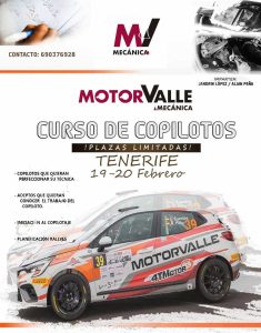 Los próximos días 19 y 20 de febrero se impartirá un curso de copilotos MotorValle con Jandrín López y Alain Peña.