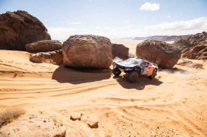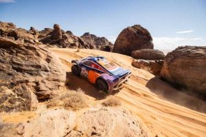 Se trataba de completar una especial en bucle, con salida y llegada en las cercanías de Hail, la base operativa del rallye ubicada más al norte de toda la edición 2022. La arena era, de nuevo, la principal protagonista del día, con algunos sectores de piedras no especialmente complicados de franquear. Bajo unas temperaturas ciertamente bajas, los participantes tomaron la salida por la mañana sin imaginarse que en apenas 50 kilómetros de tramo cronometrado ya estarían pasando un verdadero calvario.
